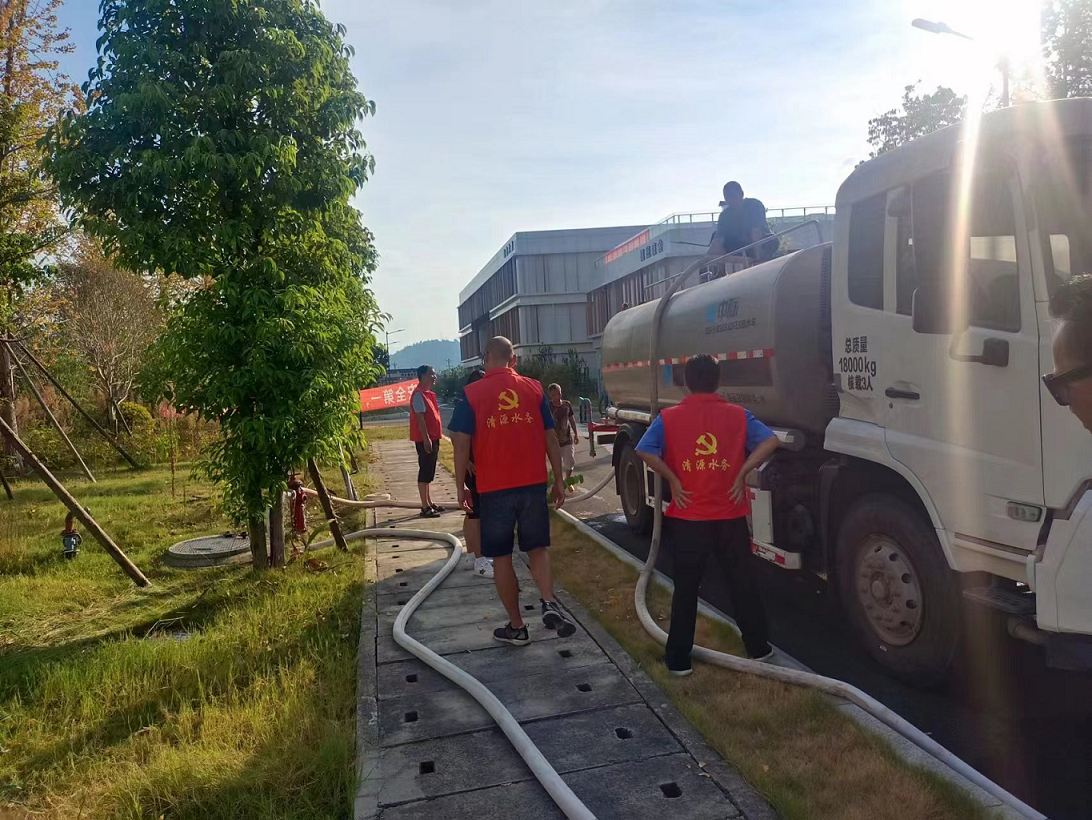 接到情況匯報(bào)后,制水分公司領(lǐng)導(dǎo)高度重視,迅速聯(lián)系共產(chǎn)黨員服務(wù)大隊(duì)黨支部協(xié)調(diào)送水車輛,并組織支部黨員及青年職工組成“送水小分隊(duì)”,向周壩村村民聚集點(diǎn)免費(fèi)送水。
