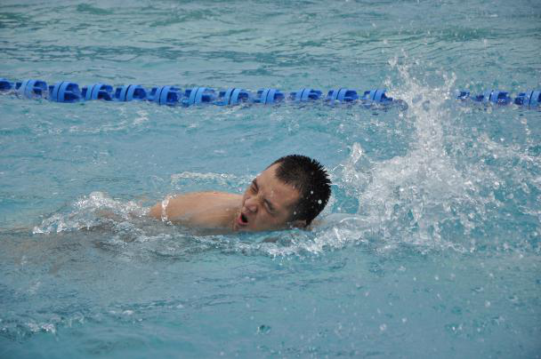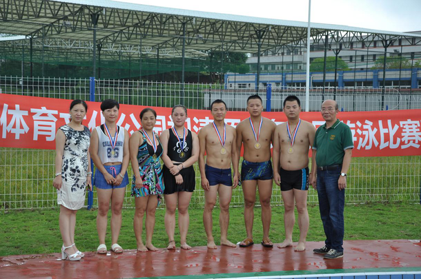 上午9點,選手們早已做好賽前準備,隨著裁判一聲號令,比賽正式開始。本次比賽設(shè)男子組和女子組50米游泳比賽、水上趣味接力賽、水上拔河比賽三個項目。首先進行的游泳比賽,雖然選手們泳姿各異,逗樂了在場加油打氣的啦啦隊員們,但他們個個激情高昂,奮勇爭先。游泳池邊歡笑聲、加油聲不斷,場面熱鬧壯觀。經(jīng)過激烈角逐,男子組侯濤、陳顯洪、李節(jié)以及女子組秦仁玉、關(guān)黎宜、李卉嫻分獲冠亞季軍。陳總和唐書記分別為他們頒發(fā)了獎牌。